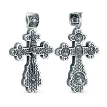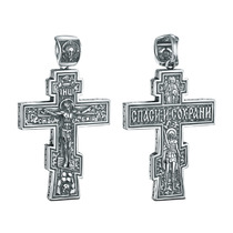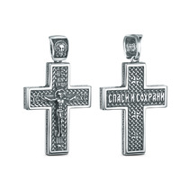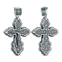 Крест из чернёного серебра - Распятие, Спаc Неpукотвоpный, Спаси и сохрани, Арха