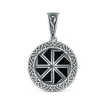Подвеска-оберег из чернёного серебра с чёрным агатом - Коловрат (Светлый, солнеч