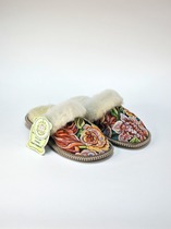 68 - Тапочки из кожи и меха с бубоном Бежевые
