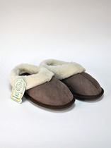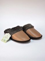 69 - Тапочки из кожи и меха с бубоном Коричневые