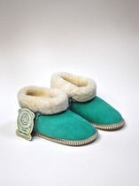175 - Тапочки кожаные с опушкой Бирюзовые