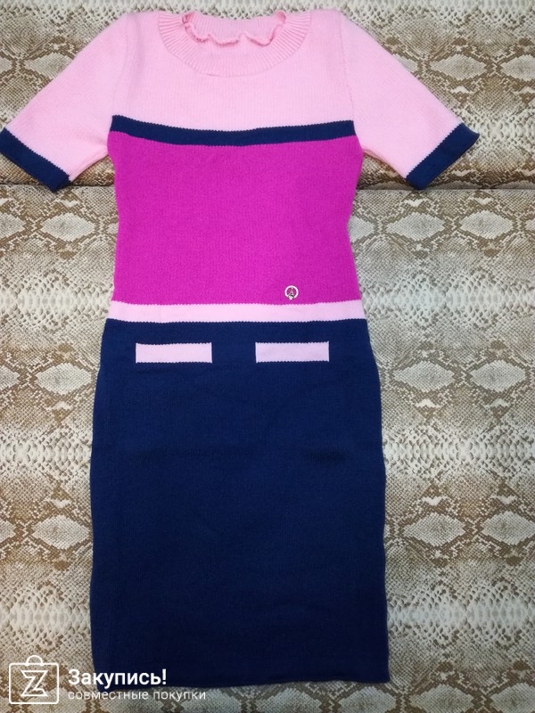 Платье имеет универсальный размер 42-48,поэтому в принципе подойдет многим,как и мне с моим 44-46,но в описании на сайте стоит состав ткани: Акрил-80%, шерсть-20%, на этикетке же (фото ниже), почему то полиэстер и хлопок, но платье очень плотное и теплое, здесь явный акрил, на счет шерсти не знаю есть ли она, но повторю платье далеко нетонкое, как кажется на картинке, цвет полностью идентичен картинке сайта, мне платье понравилось.