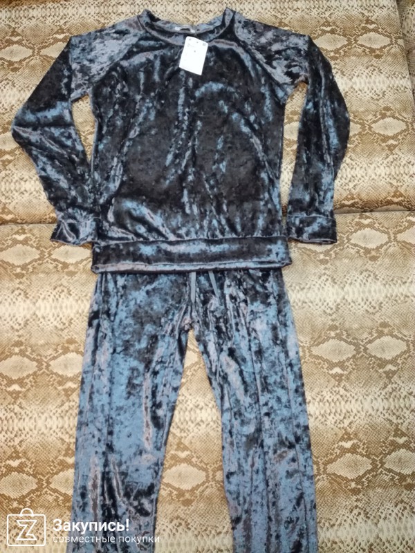 Теперь бархатный костюм, я заказала размер М, что по нашему 44 размер, для тех кто любит по свободнее, как на картинке сайта, рекомендую брать на размер больше, мне в приятную легкую обтяжку, костюм неплохой, но воротник у него совершенно некрасивый, мне пришлось вставить в него резинку, потому что без нее он торчит, как будто бы его растянули, а с резинкой супер, все лежит аккуратно и красиво, это также касается и манжет на рукавах, с резинкой получилось очень красиво, не знаю почему производитель это не учел, поэтому смело заказывайте, костюм очень приятный к телу и очень красиво смотрится.