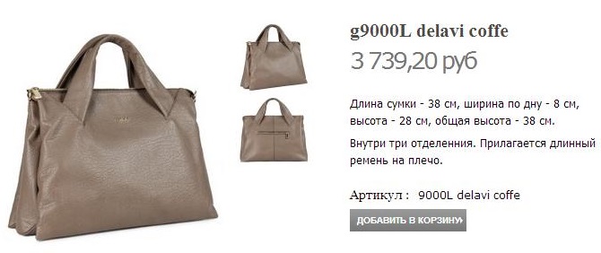 Ирина, добрый день! Я в прошлый раз про вот эту сумку спрашивала - на нее сейчас цена какая? http://www.itparad.ru/zhenskie-sumki/12356-g9000l-delavi-coffe.html& nbsp;