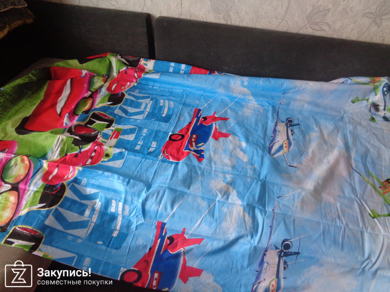 Получила свой заказ - комплект детского постельного белья из поплина арт.543 тачки. Цвета насыщенные, яркие, ткань мягкая, гладкая - не сравнить с бязью! Поплин всегда выигрывает в качестве. Рисунок разнообразный: здесь и тачки, и самолеты! Сыночек очень довольный!!! Юля, спасибо за закупку!!!
