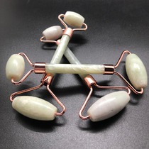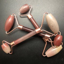Массажер для лица двусторонний из зеленой Яшмы, розовое золото 03
