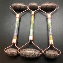 Массажер для лица двусторонний из Яшмы, с камнями Самоцветами в ручке