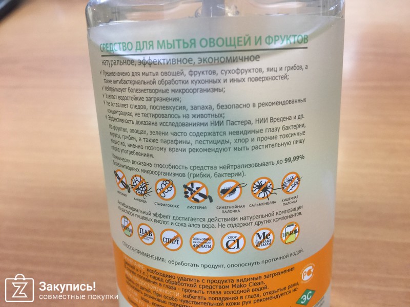 Хотела написать отзыв о средстве, которое должно быть в каждом доме, на мой взгляд. Речь идёт о средстве для мытья овощей и фруктов. Как мы знаем, чтобы попасть на стол овощи и фрукты проходят длинный и сложный путь. При этом заражаясь разными микробами. Чтобы без труда и качественно избавится от всей этой \"гадости\" придумали такой замечательный спрей, состоящий из фруктовых кислот и алоэ вера. Я мою фрукт простой водой, потом его обрызгиваю и смываю. И тогда я уверено даю фрукт ребёнку. Очень мелкое распыление, экономный расход. Мне почти на год хватило 300 мл. Спасибо за эту закупку). Буду обязательно ещё участвовать.