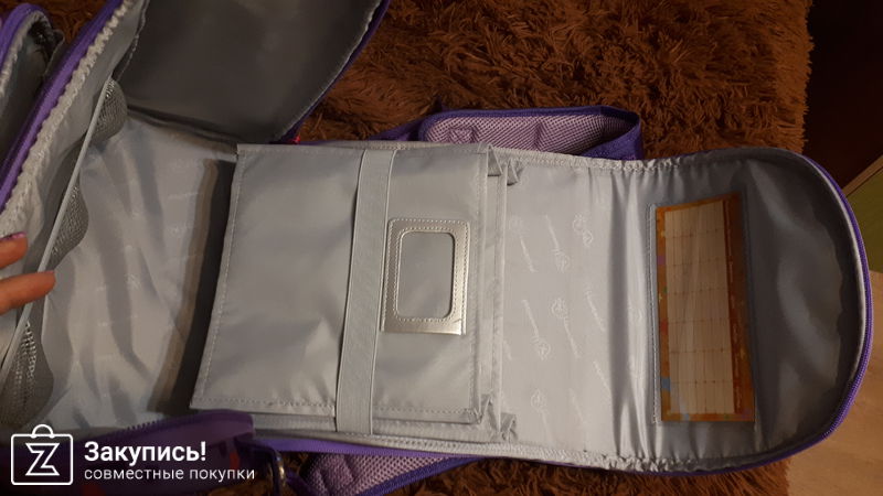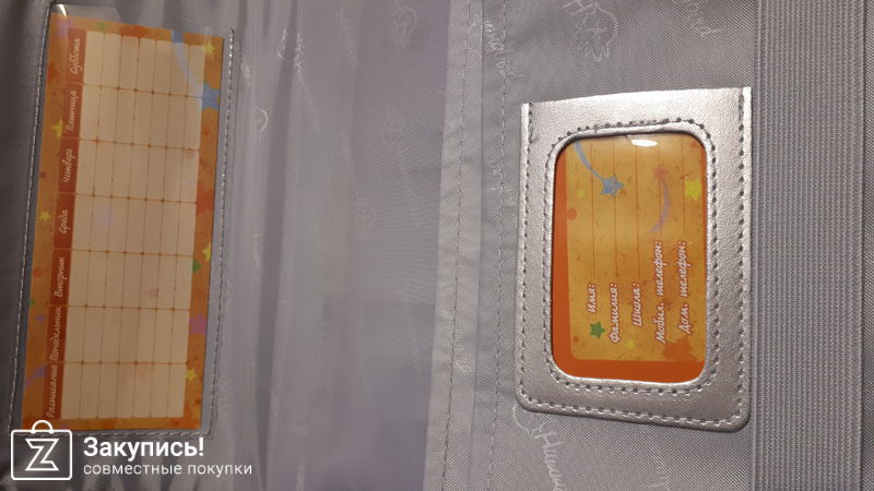 Еще фото к отзыву. Внутри как классно придумано. Расписание есть и карточка с данными. В наружнем кармане практически пенал.