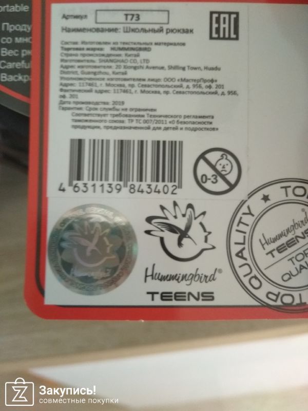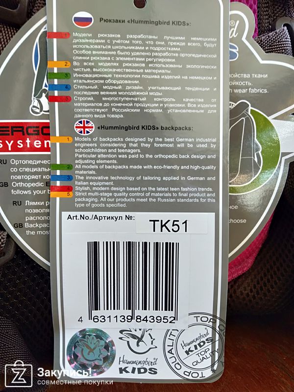 Отзывы о закупке: Школьные ранцы *H*u*m*m*i*n*g*b*i*r*d № 41 СБОР