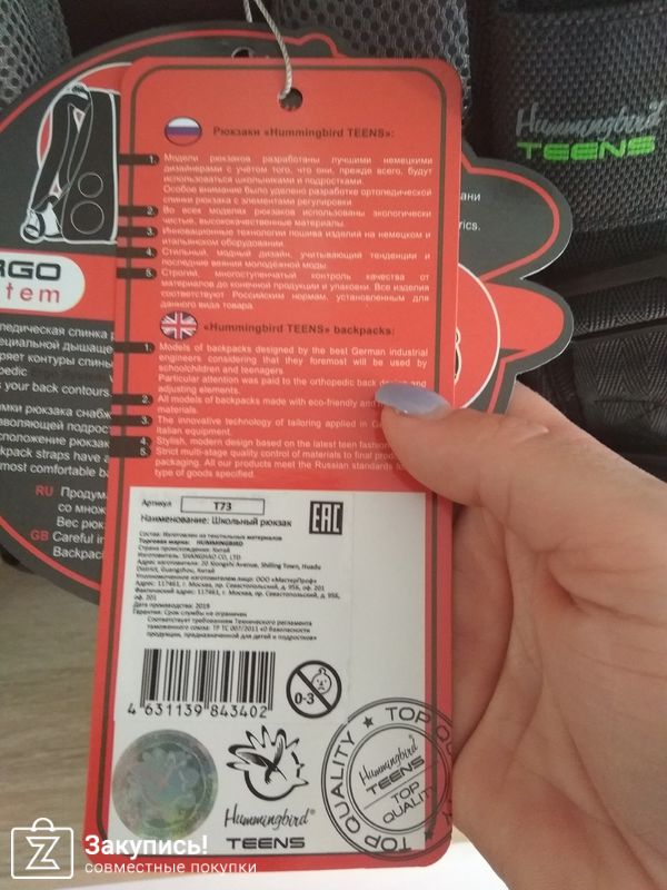 Рюкзак супер!!!!!!!!!! Качество на высшем уровне, всем рекомендую данного производителя, голограмма на этикетке подтверждает качество!!!!!!!!! Организатору спасибо за закупку.