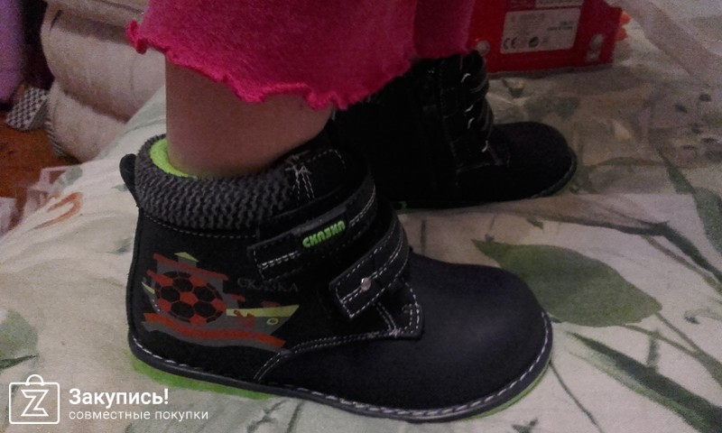Спасибо огромное организатору, уже не первый раз заказываю ребенку обувь. Носится отлично, цены радуют. В этот раз пришли ботинки Mufel р-р соответствует указанному в см.(на узкую ногу), сыну подошли не давят, понравились. Спасибо.