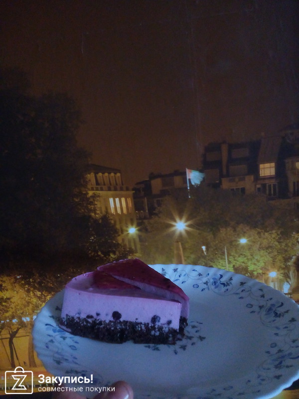Торт Черничный десерт Питер Фрост . Обладателя этого лакомства ждёт тонкий слой черничного желе , воздушный сливочно - творожный мусс с нежным вкусом черники и цельными ягодами - всё это на прекрасном шоколадом бисквите . Торт хорошо подойдёт фанатам черники и для тех , кому не по нраву очень сладкие десерты . Работа организатора закупки Ирины и всей её семьи настолько хороша , отлажена , что получаешь от этого подлинное удовольствие .