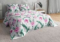 ВЛАДЛЕН Постельное белье из бязи премиум Тюльпаны на белом