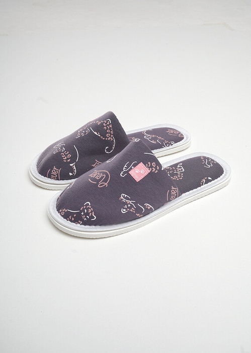 Домашние тапочки с закрытым носом из хлопкового трикотажного полотна, сверху нашивка. Толстая подошва.