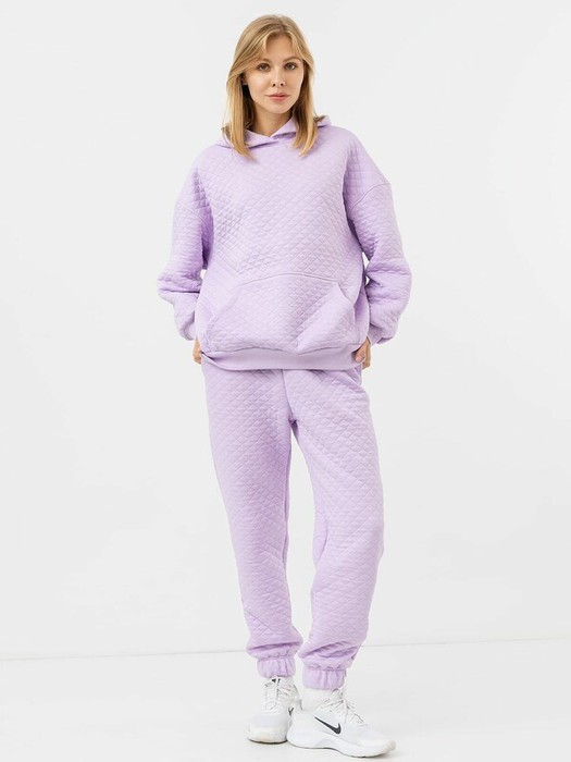 Ультрамодные женские брюки из капитона – трикотажного полотна с необычной "стеганой" фактурой. Силуэт брюки свободный, оверсайз. Пояс с эластичной тесьмой внутри. В боковых швах есть карманы. Штанины завершаются манжетами с эластичной тесьмой. Красиво и удобно!