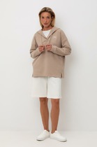 Шорты женские свободного силуэта из ткани. На детали переда карманы с отрезным бочком.