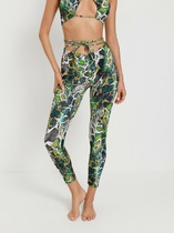 Спортивные леггинсы принтованные   с завышенным поясам и фигурным вырезом задней части.