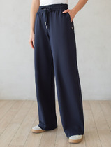 Спортивные широкие базовые женские брюки. Выполнены из хлопкового трикотажа футер без начеса. Модель свободного кроя со средней посадкой на талии. Пояс на резинке, дополнительно регулируется шнурком. По бокам — удобные карманы.