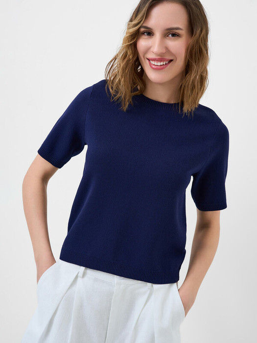 Женский джемпер. Модель средней длины, выполнен из тонкого мягкого трикотажа с жаккардовой фактурой. Имеет прямой крой и короткие рукава. Горловина, низ и края рукавов оформлены резинкой.