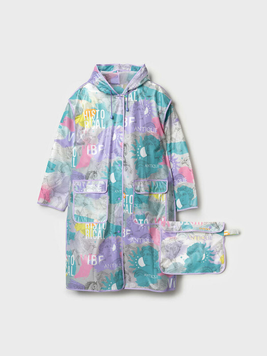 Женский плащ-дождевик с фирменным принтом в коллекцию. Капюшон с утяжкой. Застежка на кнопки. Материал ЭВА. Без подкладки. Модель имеет спереди два накладных кармана с клапаном. Добавлена петелька под капюшоном с внешней стороны, чтобы остальные вещи на вешалке не намокали. Сзади есть светоотражающая полоска. Идеально подходит для парного образа мама-дочь, так как такая модель есть в детских размерах. В комплекте идет непромокаемая сумочка.