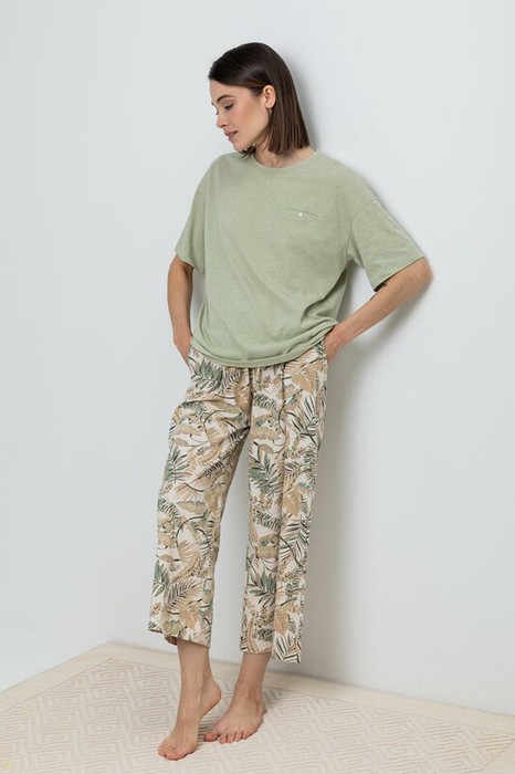 Лёгкие комфортные брюки из набивного трикотажа супрем. Модель с поясом на резинке и боковыми карманами. Низ изделия обработан плоскими швами. Гладкий материал приятен к телу, не теряет форму и позволяет коже дышать.