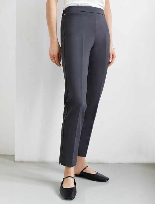 Брюки-дудочки выполнены из джерси. Модель дополнена резинкой сзади, одним вместительным карманом спереди и небольшими боковыми разрезами. Заутюженные стрелки и посадка на талии визуально вытягивают силуэт. Изделие хорошо держит форму, отлично тянется и почти не мнется во время использования. Идеальный вариант в офис или в повседневный классический стиль.