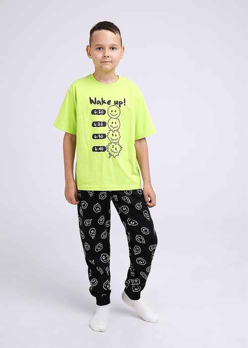 Стильный хлопковый комплект для дома подарит тебе уют и комфорт! Футболка среднего объёма с эластичной горловиной и тематичным принтом. Набивные брюки с эластичными манжетами, резинка по поясу для комфортной посадки.Уют и комфорт на каждый день!