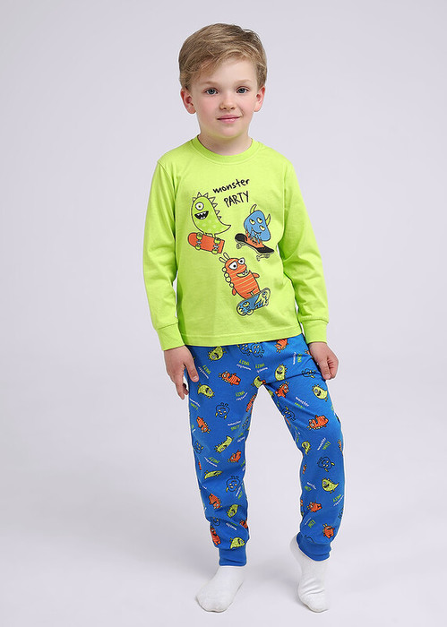 Хлопковая пижама: джемпер с эластичной горловиной и манжетами. Комфортная посадка, тематичные крутые принты - всё, что нужно для времяпровождения дома, брюки на резинке для комфортной посадки.