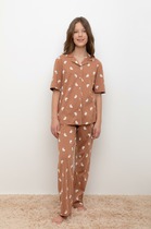 Трикотажная пижама из натурального хлопка. Джемпер с длинными рукавами с эластичными манжетами. У брюк эластичный пояс на резинке. Оригинальная набивка и принт выполнены из стойких, гипоаллергенных текстильных красителей. Пижама сохраняет цвет и форму после многократных стирок. Все трикотажные полотна производятся в соответствии с нормами Швейцарского сертификата ЭкоТекс.