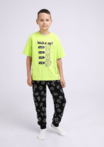 Трикотажная пижама из натурального хлопка. Джемпер с длинными втачными рукавами и брюки с эластичной резинкой в поясе. Мягкие манжеты на рукавах и по низу брюк. Оригинальная набивка выполнена из стойких текстильных гипоаллергенных красителей. Изделие сохраняет цвет и форму после многократных стирок. Все трикотажные полотна производятся в соответствии с нормами швейцарского сертификата ЭкоТекс.