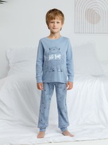 Трикотажный пижамный комплект из футера с начёсом, произведённого из натурального хлопка. У джемпера длинные рукава со спущенными плечами и эластичная мягкая горловина и манжеты. Брюки с удобным поясом на резинке, внизу манжеты. Оригинальная набивка  выполнена из стойких, гипоаллергенных текстильных красителей. Все трикотажные полотна производятся в соответствии с нормами Швейцарского сертификата ЭкоТекс.