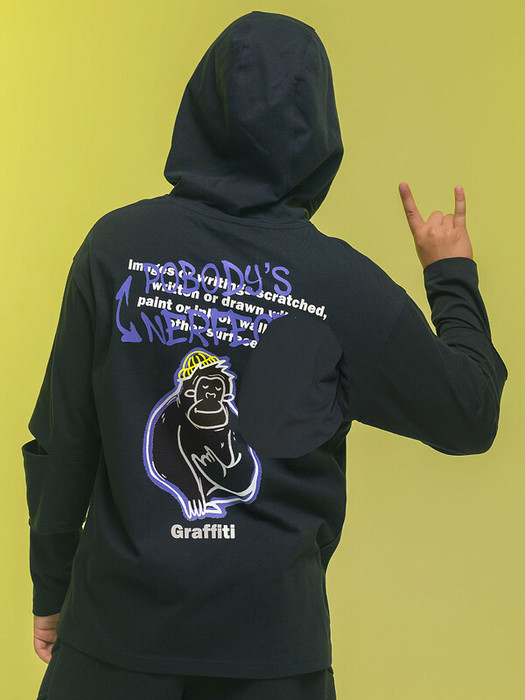 Джемпер детский для мальчика. Изделие актуального оверсайз-силуэта со спущенным плечом подарит ребёнку комфорт и не будет сковывать его движений. Модель с капюшоном с двумя швами — это обеспечивает анатомически правильную форму и комфортную посадку по голове. Джемперы с имитацией многослойности в стиле гранж актуальны в этом сезоне. Рукава состоят из двух частей, которые наслаиваются друг на друга. На верхней части аккуратные декоративные разрезы. Изделие неприхотливо в уходе. Худи с принтом на спине выполнено из 100% высококачественного хлопка — джемпер мягкий и безупречно пропускает воздух, давая коже ребёнка дышать. Принт эластичный и прочный — отлично переносит частые стирки. Принт изображает гориллу с текстом-объяснением, что такое граффити, текст переводится: «изображения или надписи, нацарапанные или нарисованные красками или чернилами, на стенах и других поверхностях», «никто не идеален». Изделие выполнено в классическом чёрном цвете, его легко комбинировать с любыми брюками, джинсами. В линейке представлены следующие размеры: 2 (92); 3 (98); 4 (104); 5 (110); 6 (116); 7 (122); 8 (128); 9 (134); 10 (140); 11 (146). Отличный детский свитшот для мальчиков дошкольного и младшего школьного возраста, а также подростков. Подходит для детского сада, прогулок, отдыха, дома. Джемпер со спущенными рукавами подходит для круглогодичного применения: летом, осенью, зимой, весной и демисезон. Это прекрасный подарок сыну, брату, внуку или племяннику на Новый год и любой другой праздник.