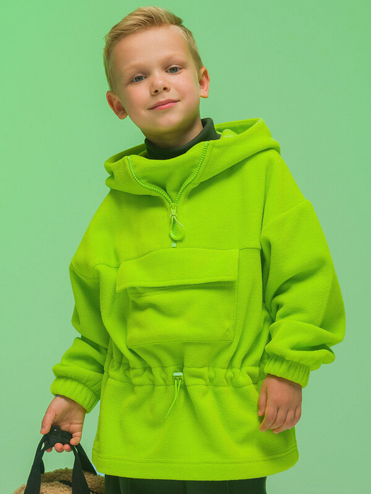 Детский анорак для мальчика. Флисовая куртка оверсайз-силуэта со спущенным плечом подарит ребёнку комфорт и не будет стеснять его движений. Капюшон защищает от холода и ветра. По переду застёжка на короткую молнию — актуальный модный тренд. В манжетах рукавов комфортная широкая резинка. В поясе предусмотрена утяжка для регулировки объёма изделия. По переду удобный накладной карман с клапаном для хранения важных мелочей, закрывается на липучку. Детский анорак лаконичного дизайна, без принта. Толстовка неприхотлива в уходе. Флис тёплый, лёгкий, мягкий, просто стирается и быстро сохнет, не выгорает и не скатывается, одежда из него надолго сохраняет великолепную форму. Куртка на мальчика выполнена в двух трендовых цветах: зелёный и синий. Размерный ряд: 1 (86); 2 (92); 3 (98); 4 (104); 5 (110); 6 (116); 7 (122); 8 (128); 9 (134); 10 (140); 11 (146). Анорак оверсайз-силуэта идеален для малышей, мальчиков дошкольного и младшего школьного возраста, а также подростков. Он подходит для детского сада, прогулок, активного отдыха, спорта. Хорошо сочетается с разлиными брюками. Прекрасная куртка на осень и весну (демисезон), а также прохладное лето. Анорак станет отличным подарком сыну, внуку, брату или племяннику на любой праздник или просто в качестве знака внимания и заботы.