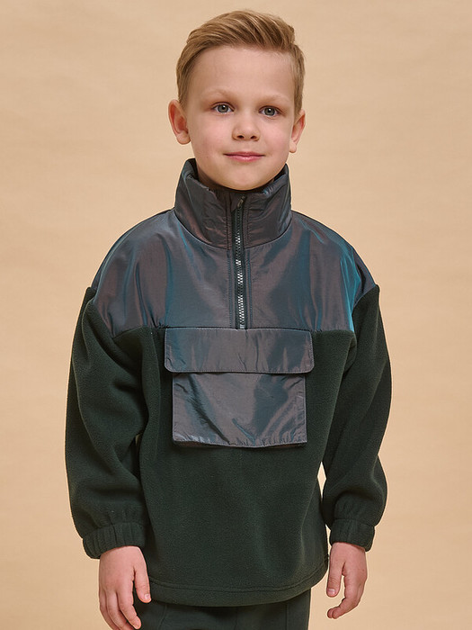 Детский анорак для мальчика. Куртка выполнена в сочетании двух материалов: флиса и гладкой курточной ткани. Это супермодный тренд. Кокетка и карман из курточной ткани — максимум практичности: ребенок не промокнет и карман не замарается при частом использовании.  Анорак оверсайз-силуэта со спущенным плечом подарит ребёнку комфорт и свободу движения. Высокий воротник-стойка защищает от холода и ветра. По переду застёжка на короткую молнию — актуально в этом сезоне. Тканевый стоппер защищает подбородок от зажима молнией. В манжетах рукавов комфортная широкая резинка. По низу изделия предусмотрена утяжка для регулировки объема. По переду объёмный карман-портфель из курточной ткани с клапаном, застегивается на липу (велькро). Детский анорак однотонный, без принта. За ним легко ухаживать. Оба материала состоят из полиэстера  — куртка тёплая, лёгкая, мягкая, просто стирается и быстро сохнет, не выгорает и не скатывается, сохраняет великолепную форму надолго. Анорак выполнен в трендовом зеленом цвете . В линейке представлены следующие размеры: 1 (86); 2 (92); 3 (98); 4 (104); 5 (110); 6 (116); 7 (122); 8 (128); 9 (134); 10 (140); 11 (146). Прекрасная куртка на мальчика дошкольного и младшего школьного возраста, а также подростка. Подходит для детского сада, прогулок, активного отдыха, спорта. Отличная куртка на осень и весну (демисезон), а также прохладное лето. Она может заменить ветровку в начале осени или конце весны, а зимой послужит тёплым средним слоем одежды. Прекрасный подарок сыну, внуку, племяннику или брату на День рождения и любой другой праздник.