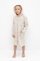 Костюм для мальчика, состоящий из футболки и шорт. Футболка однотонная с принтом на груди; модель свободная, со спущенной линией плеч. Шорты из полотна с набивным рисунком эксклюзивного дизайна, с боковыми карманами с обтачными входами, на притачном поясе с отстроченной эластичной тесьмой.