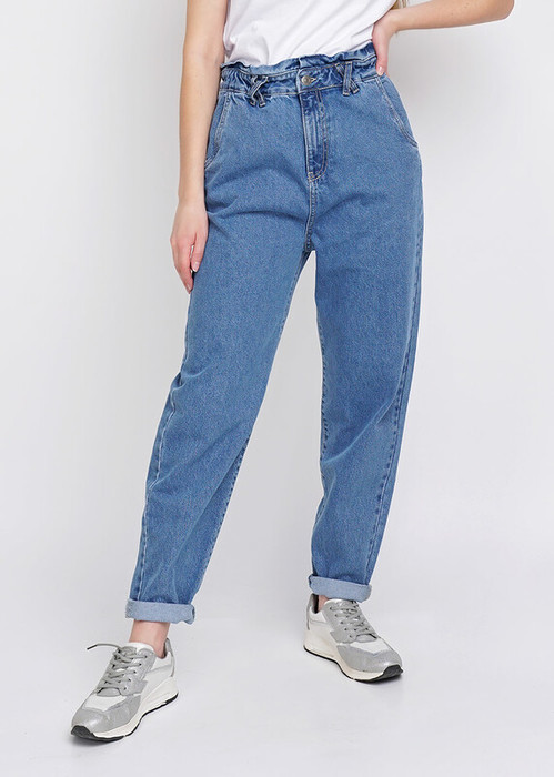 Джинсы baloon из 100% хлопкового денима. Высокая посадка, свободный крой в области бёдер и плавное сужение книзу. Вытачка по низу брючин делает модель интереснее, а резинка по талии обеспечивает более комфортную посадку. Имеются шлевки для ремня.