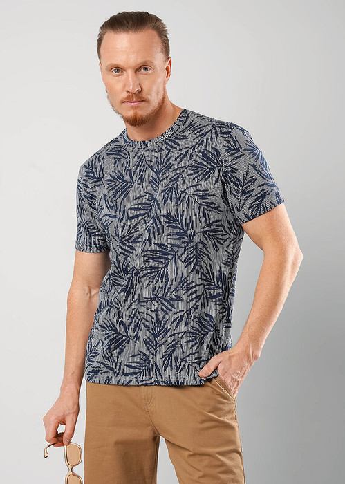 Футболка мужская с округлой горловиной и втачным рукавом, выполнена из хлопкового полотна с летним принтом. Хорошо сочетается с шортами и джинсами.