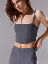 Топ женский из однотонного трикотажного полотна. По верхнему краю переда (по центру) -декоративная сборка, внизу, по бокам - декоративные кружевные вставки. Верхний срез изделия, проймы и бретели окантованы узкой бейкой.