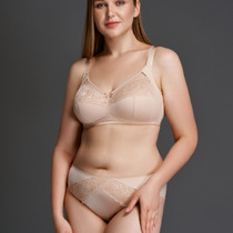 Бюстгальтер женский с мягкими чашками (балконет), с двойным членением, на 20 типе каркаса, выполнен из кружевного полотна. Верхний срез чашки обработан в два приема тесьмой с зубом. Проймы, верхний срез спинки и нижний срез стана обработаны жесткой тесьмой без зуба. Ластовица и деталь стана на подкладке из монокапрона. В боковой детали стана пластины. Бретель регулируемая по размерам. Кольца-регуляторы по размерам. Застежка двойная по размерам.