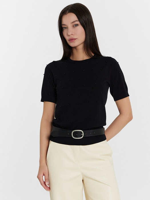 Этот женский джемпер с короткими рукавами и круглым вырезом станет прекрасным дополнением вашего гардероба. Приталенный крой подчеркнёт вашу фигуру, а декоративные бусины добавят милый и элегантный акцент. Изделие выполнено из вискозы с добавлением искусственных волокон, что обеспечивает прочность и долговечность. Джемпер идеально подходит для создания стильных и уютных образов, которые можно легко комбинировать с брюками, джинсами или юбками. Отличный выбор для любого сезона!
