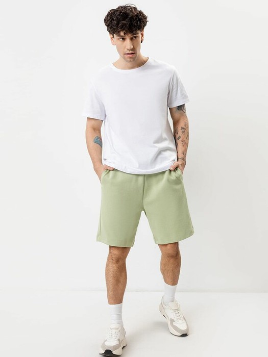 Стильные мужские шорты из трикотажного интерлока. Строгий прямой силуэт, эластичная тесьма в поясе, регулировочный шнур-завязка, удобные боковые карманы – ничего лишнего!