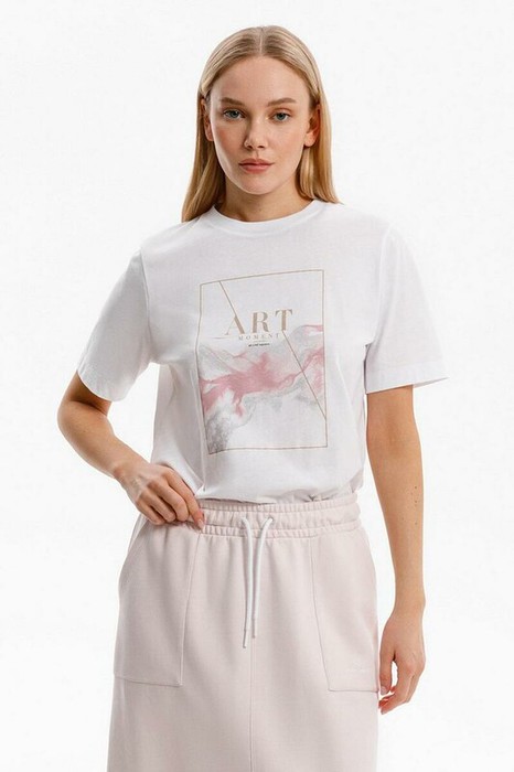 Футболка прямого силуэта из высококачественного гребенного хлопка. Мягкий на ощупь принт выполнен из водных красок, что обеспечивает устойчивость к многократным стиркам, а его дизайн добавляет летнего настроения.