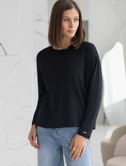 Совместные покупки Нижний Тагил Женская одежда Джемперы, свитеры, водолазки — 09.04 Vilatte Базовый лонгслив из премиального хлопка с эластаном D49.147 черны