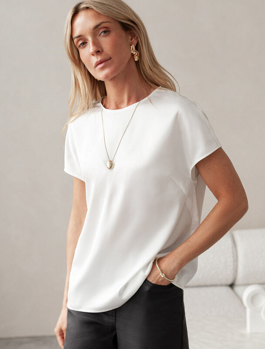 Совместные покупки Нижний Тагил Женская одежда Блузки, рубашки — 21.04 Vilatte Блузка из стаина с коротким рукавом D29.276 натуральный белый