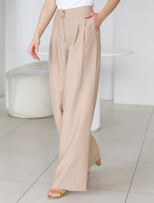 Брюки выполнены из плотного лиоцелла. Модель дополнена карманами и высоким поясом на пуговицах. Ткань изделия отлично держит форму, плавно драпируется и не просвечивает. В теплое время года приятно охлаждает кожу. Добавление синтетических волокон в составе изделия, предотвращает сминаемостьи поддерживает формоустойчивость. Брюки сочетаются в костюме с топом D23.063 и блузкой D29.266, D29.267 и жилетом D27.002