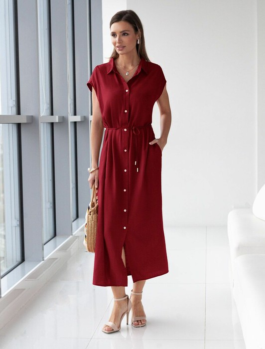 Платье-рубашка салатового цвета выполнено из натурального льна и вискозы, плотностью 200 Г/м2. Сочетание льна и вискозы обеспечивает комфорт и прохладу в жаркие дни. Это свободное платье на пуговицах по всей длине будет идеальным выбором для лета и весны. Благодаря качественному составу ткани, платье отлично держит форму, не сковывает движения и отличается износостойкостью. Отложной воротник добавляет классический акцент, удобный пояс подчеркивает талию, делая силуэт выразительным и женственным. Платье с коротким цельнокроеным рукавом смотрится современно, а высокие разрезы по бокам добавляют легкости и динамики образу. Подойдет на большие размеры, скроет возможные недостатки и подчеркнет достоинства фигуры. На высокий рост платье будет длины миди, а на низкий рост - длина макси. Такое красивое и легкое платье подойдет для работы, городской прогулки и повседневного стиля.