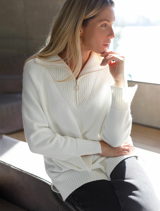 Совместные покупки Нижний Тагил Женская одежда Джемперы, свитеры, водолазки — 09.04 Vilatte Джемпер с воротом на молнии из пряжи с кашемиром D34.132 натураль