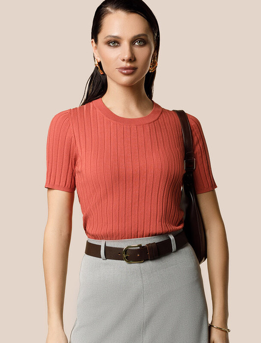 09.04 Vilatte Джемпер тонкой вязки из вискозы с нейлоном D39.318 терракотовый