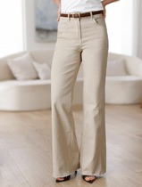 Джинсы-трубы выполнены из эластичного тонкого денима. Модель свободного кроя в бежевом оттенке с посадкой на талии визуально вытягивает ноги и удлиняет силуэт. Хорошо подойдут для расслабленных повседневных, уличных и офисных образов. Сочетаются с любым верхом от повседневного до классического.